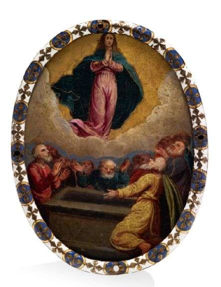 MÉDAILLON OVALE représentant l'Ascension de la Vierge.