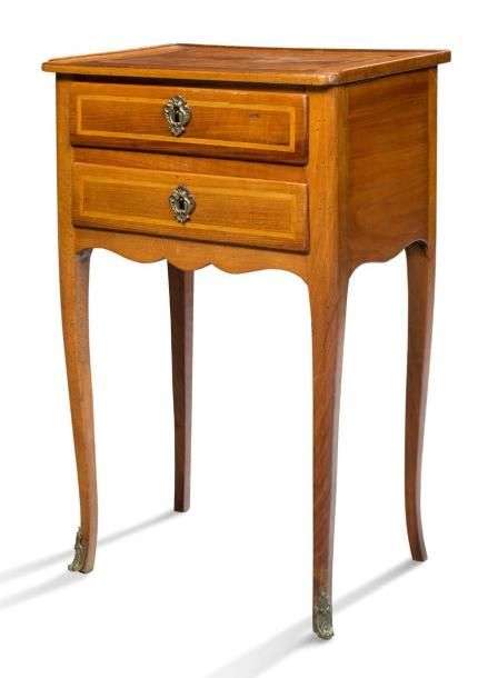 PETITE TABLE DE SALON en bois fruitier, elle ouvre par deux tiroirs en faç