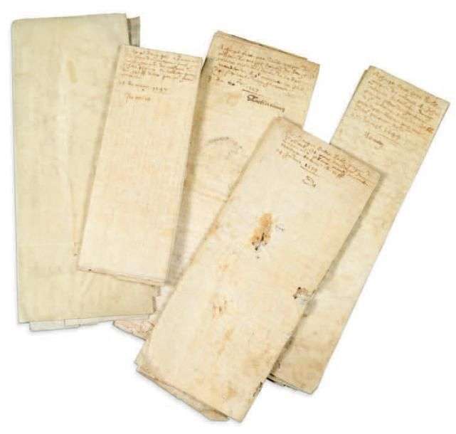 [SOMME]. [ARAINES]. [LE QUESNOY]. Baux à cens en faveur des seigneurs d'Araines, famille d'Ailly.