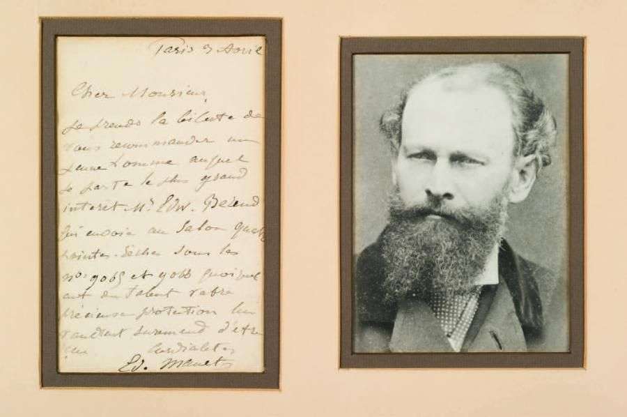 L.A.S. Paris, 3 avril. 1 pp. bi-feuillet in-8| sous encadrement marie-louise accompagné d'un portrait photo (reproduction).