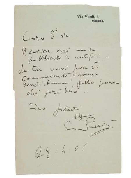Lettre à son agent concernant une annonce à paraitre dans le Corriere della Serra. Car le journal n'a pas publié sa notice|