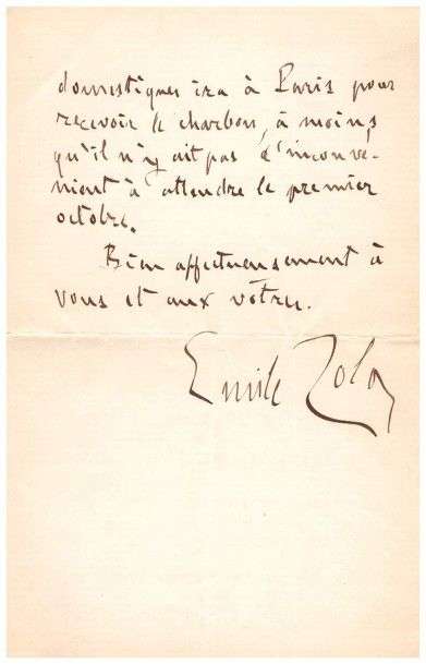Zola lui demande de le prévenir et le charge de faire sa commande de charbon| un de ses domestiques ira à Paris pour recevoir la livraison.