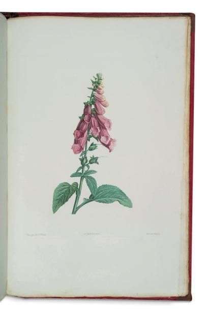 Fx-titre, titre et premier tirage des 65 planches hors-texte gravées au pointillé, imprimées en couleurs et finement retouchées au pinceau d'après les peintures de Pierre-Joseph Redouté.
