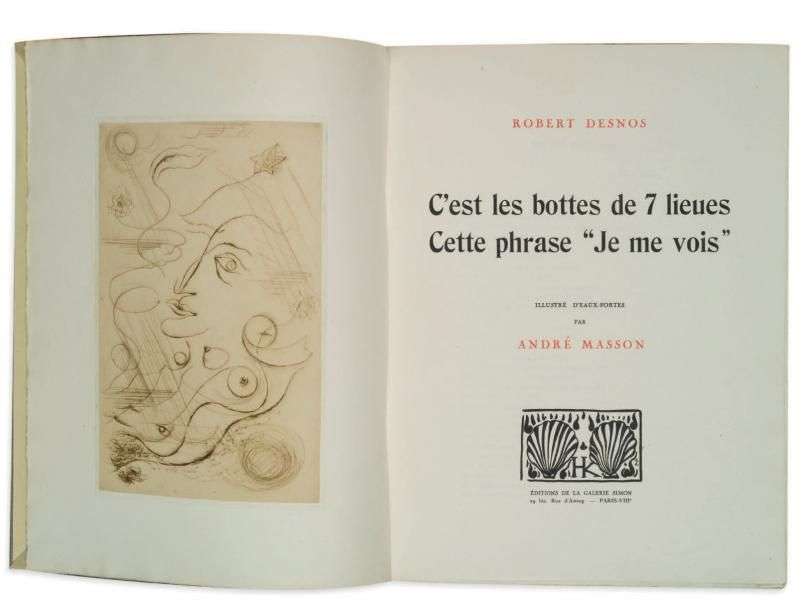 C'est les bottes de sept lieues. Cette phrase, «je me vois», illustré d' eaux-fortes par André Masson. P. Galerie Simon (1926).