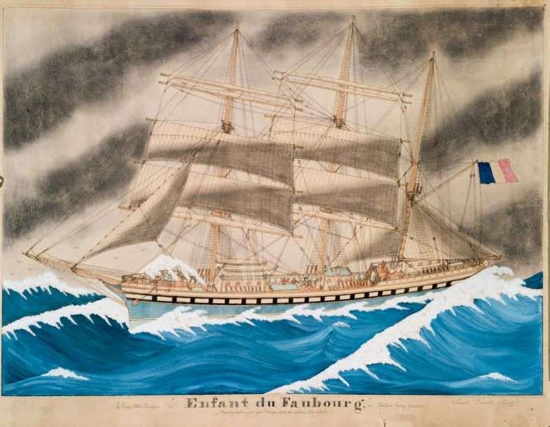 Aquarelle enfant du Faubourg, voilier long courier signée Paul-Emile Pajot
