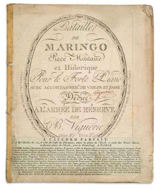Bataille de Maringo. Pièce militaire et historique pour le forte piano avec accompagnement de violon et basse. Dédiée à l'armée de réserve par B. Viguerie. A Paris, chez l'auteur, s.d. (vers 1800).