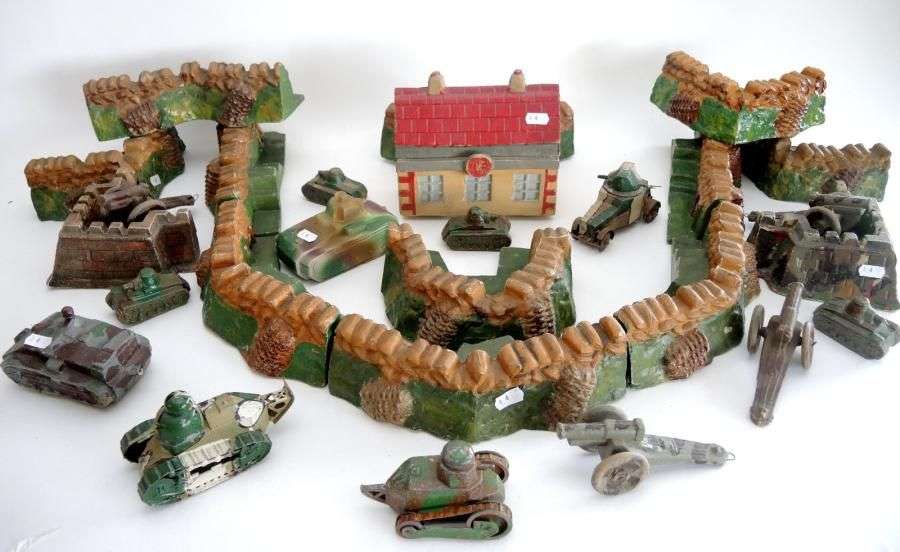 Lot divers de fortifications en plâtre et farine - tanks en plomb RENAULT