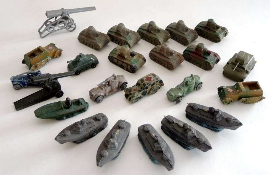 Jouets divers comprenant tanks en plomb – engins blindés – Vedettes en composition JRD (+ de 30 p.).
