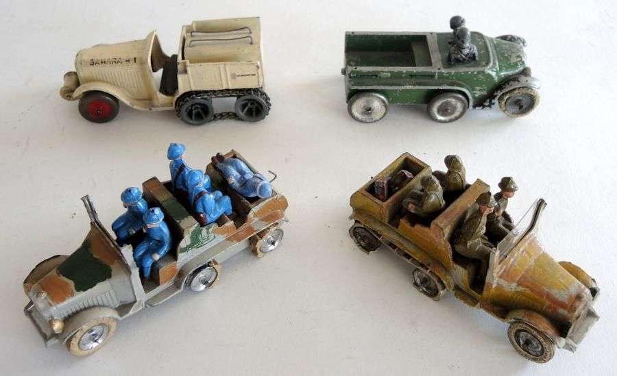 Quatre camions en plomb et aluminium, transport de troupes – Croisière Noire, en état moyen et incomplet.