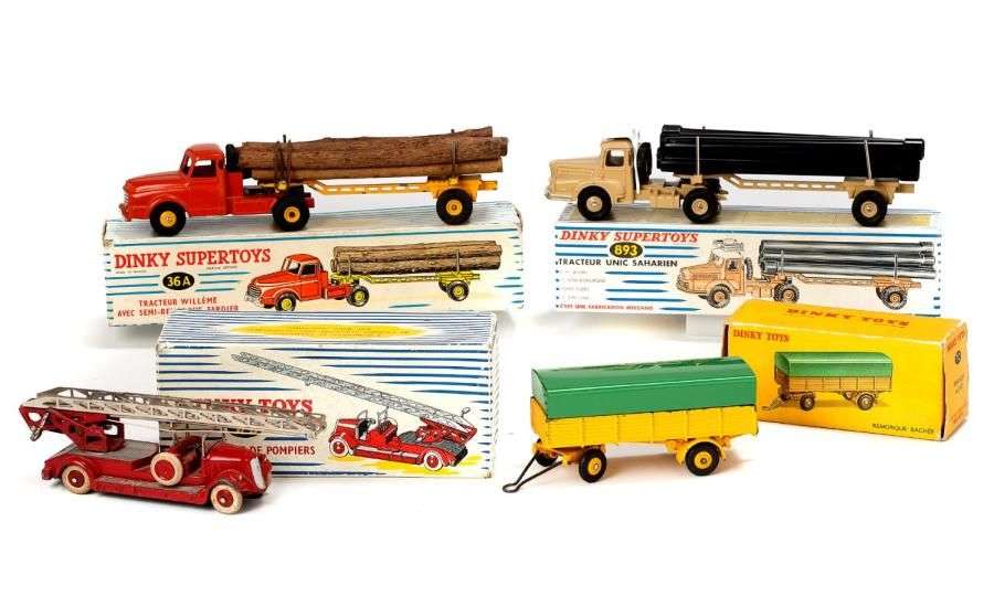 DSTF : Tracteur UNIC saharien réf. 893 (bo) – Tracteur WILLEME avec semi-remorque FARDIER réf. 36 A (bo) - Remorque bâchée réf. 70.