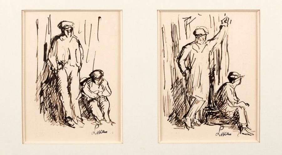 Deux encres et crayon sur papier réunies dans un cadre, portant une signature en bas à droite