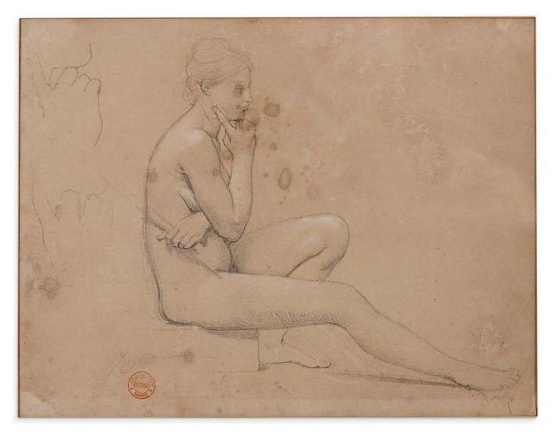 Notre dessin est une étude pour la figure de femme personnifiant l'Odysée en bas à la droite d'Homère dans le tableau L'Apothéose d'Homère, conservé au Louvre (voir D. Ternois, Tout l'oeuvre peint d'Ingres, Paris, 1971, n° 121, reproduit).