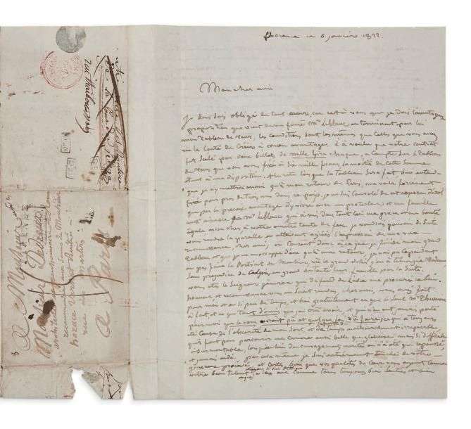 L.A.S., Florence 6 janvier 1822, à l'architecte Pierre-Anne DEDREUX à Paris| 2 pages in-4, adresse.