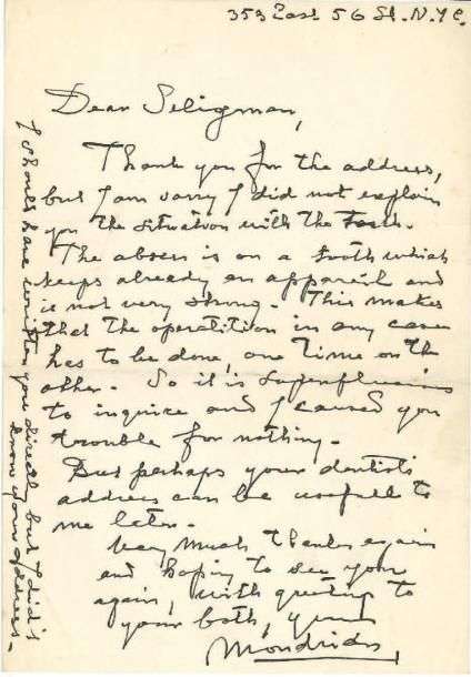 York adressée au peintre surréaliste Kurt SELIGMANN, lettre chaleureuse dans laquelle il le remercie pour une adresse donnée et il souhaite le revoir.