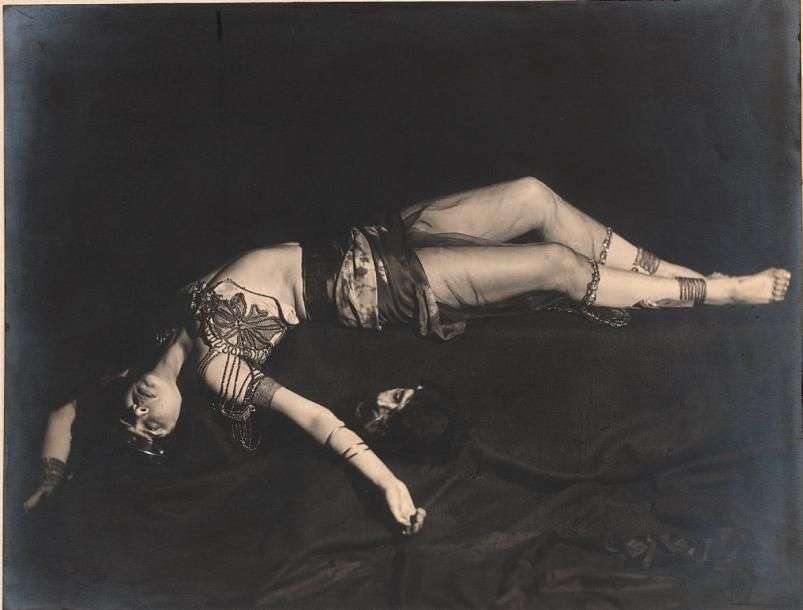 Tirage argentique d'époque contrecollé sur carton, représentant Ervina KUPFEROVA allongée en Cléopâtre.