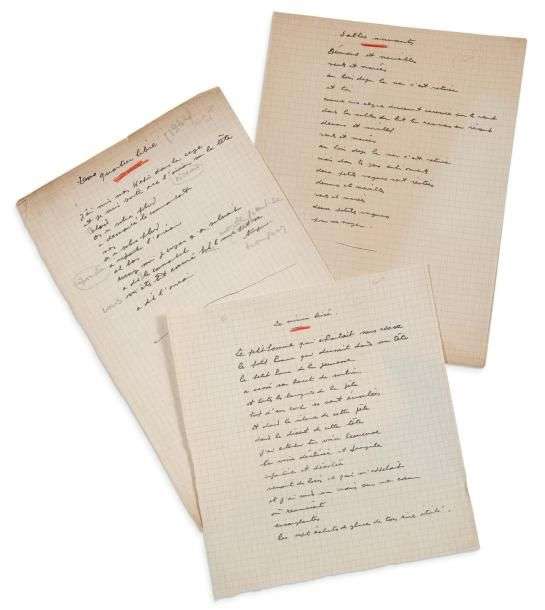 3 Poèmes autographes, Quartier libre, le Miroir brisé et Sables mouvants, circa 1942| 3 pages in-4|