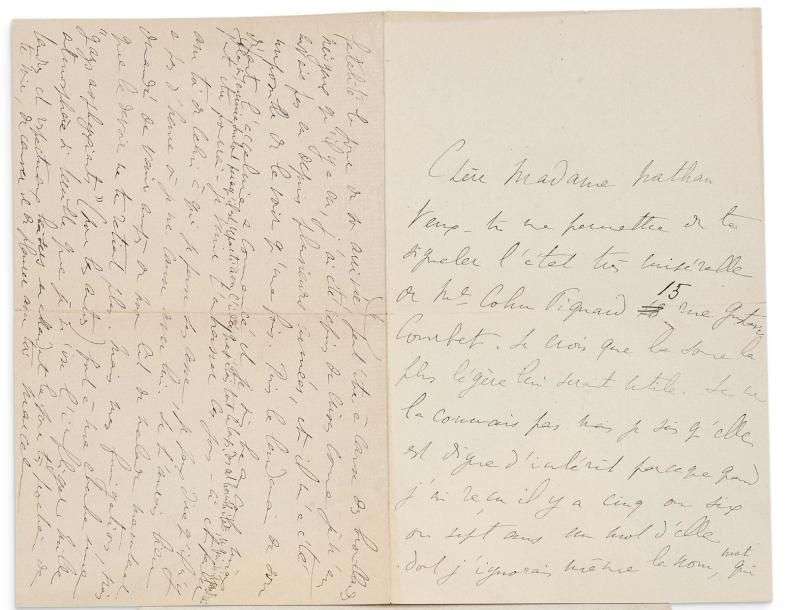Il indique à son amie Madame Nathan qu'il est intervenu en faveur d'une dame dans la misère Madame COHN-PIQUARD, qu'il ne connaît pas mais qui lui avait écrit, il y a environ 5 ans, un «mot qui faisait appel à des affections de famille». Il avait consulté alors M. Nathan, et lui envoyait depuis des secours: «Mais étant maintenant moi-même