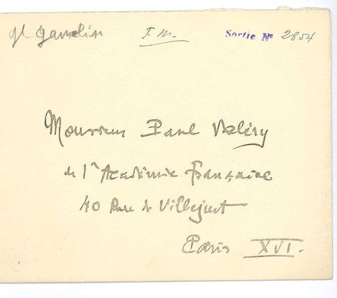 PAINLEVÉ (1931, félicitant Valéry de sa promotion au grade de commandeur de la Légion d'honneur). Maurice PALÉOLOGUE (2, 1927- 1940, sur la réception de Valéry à l'Académie, et sur Nietzsche). Jean
