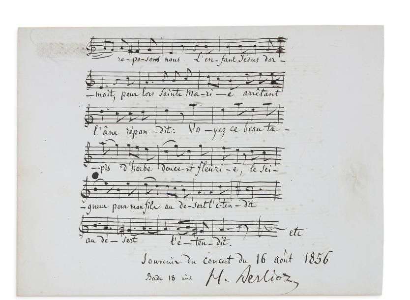 MANUSCRIT MUSICAL autographe signé, extrait de L'Enfance du Christ, 16 août 1856| 2 pages oblong in-4 (un feuillet recto-verso).