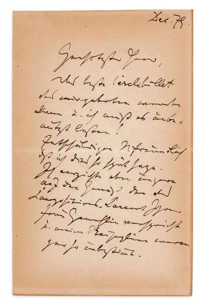 L.A.S., décembre 1879| 1 page et demie in-8 (papier légèrement bruni)| en allemand.