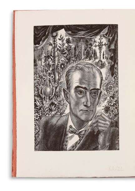 + XV portraits de musiciens gravés par DECARIS. Introduction de René DUMESNIL (Paris, 1964)| in-folio, [12 p.] et 15 gravures, en feuilles sous couverture illustrée, étui. 15 burins originaux hors texte d'Albert DECARIS: portraits de Monteverdi, Lulli, Haendel, Bach, Mozart, Beethoven, Paganini, Schubert, Berlioz, Chopin, Liszt, Wagner, Debussy, Ravel et Manuel de Falla.