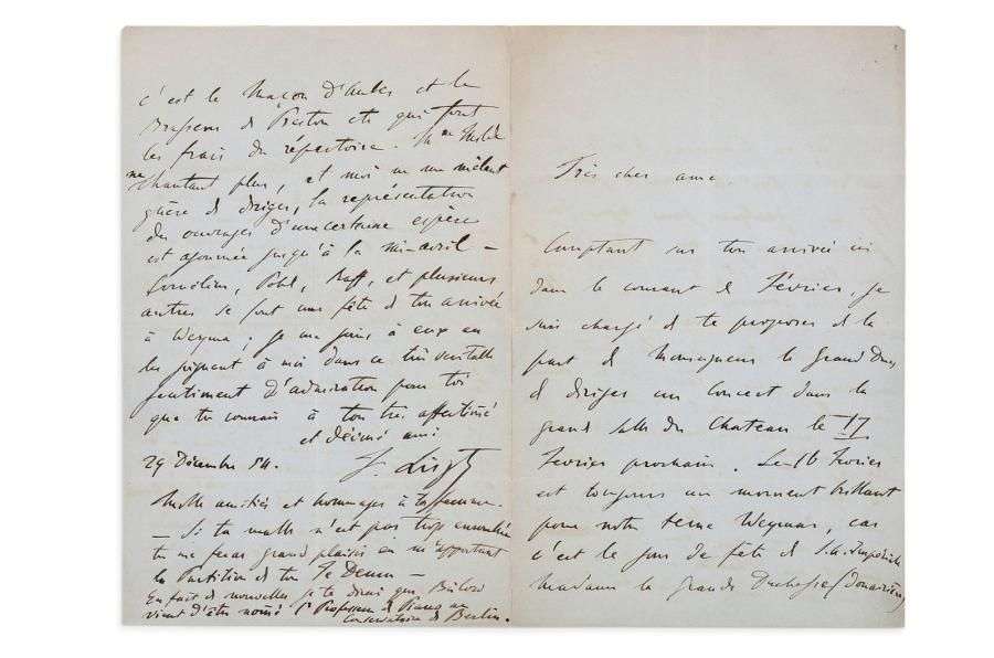 L.A.S., [Weimar] 29 décembre 1854, à Hector BERLIOZ| 4 pages in-8 sur papier bleu.