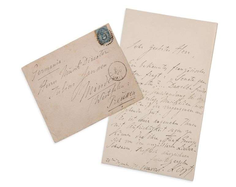 L.A.S., Villa d'Este 24 décembre 1879, à Julius JANSSEN, «Musik Director» à Minden (Wetsphalie)| 1 page in-8, enveloppe timbrée| en allemand.