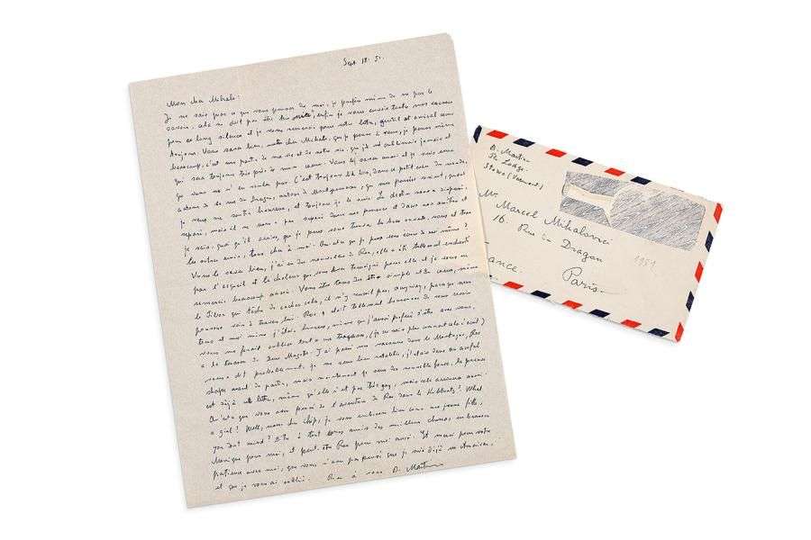 + L.A.S., Stowe (Vermont) 18 septembre 1951, à Marcel MIHALOVICI| 1 page in-fol., enveloppe (timbre découpé).