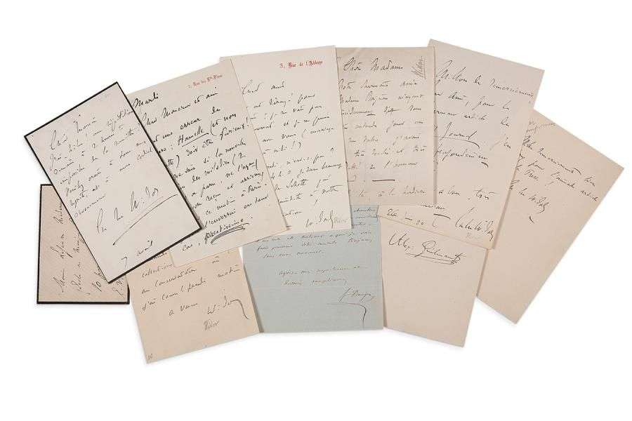 Félix DANJOU, 29 décembre 1845, à Pierre- Ange Vieillard, rendant compte de ses négociations en faveur de sa cantate. Alexandre GUILMANT, 23 avril 1884, remerciant son collègue Edmond Hounelle de l'avoir remplacé aux vêpres... Charles-Marie WIDOR (9, 1884-1890 et s.d.): à Lefèvre-Niedermeyer de l'École de musique religieuse| à un ami, au sujet de la nouvelle édition de ses mélodies en 2 volumes, et disant son admiration pour les articles de Ch. Maurras| à une dame à qui il adresse le recueil de ses Valses| remerciant de charmants articles des journalistes du Petit Journal et de La Presse...