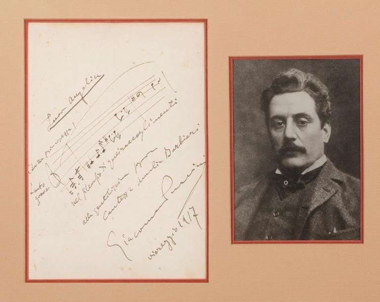 P.A.S. MUSICALE, Viareggio 1917| 1 page petit in-4 (légères rousseurs), encadrée avec une photographie de Puccini.