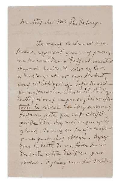 L.A.S., Paris 25 mars 1861, à Jules PASDELOUP| 1 page et demie in-8.