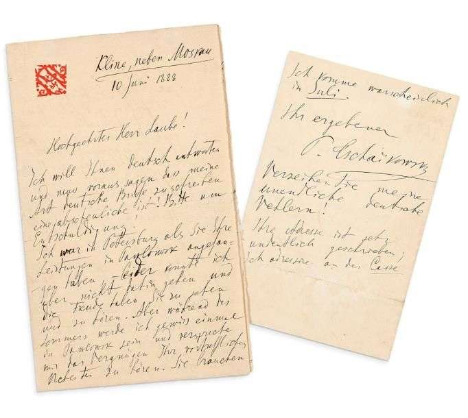 L.A.S., Kline près Moscou 10 juin 1888, au chef d'orchestre Julius LAUBE| 8 pages in-8 à son chiffre| en allemand.