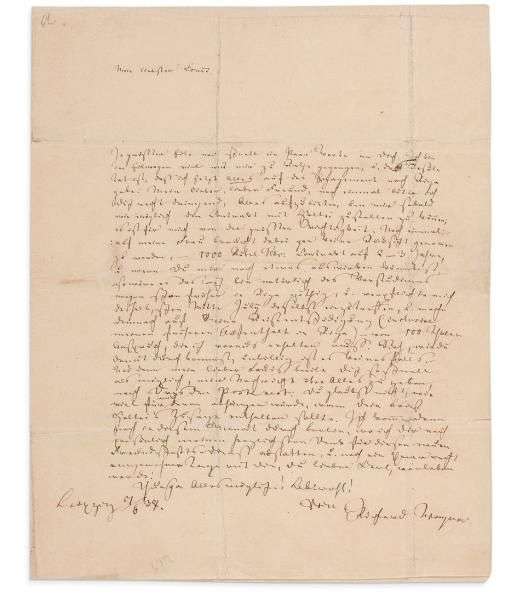 L.A.S., Leipzig 7 juin 1837, à Louis SCHINDELMEISSER, «Capellmeister am Königsstädtischen Theater» à Berlin| 1 page grand in-4, adresse avec restes de sceau de cire rouge et cachets postaux (fente aux plis soigneusement réparées)| en allemand.