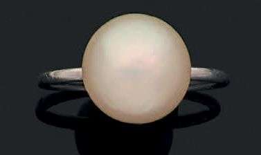 Bague en platine (950) ornée d'une perle fine bouton.