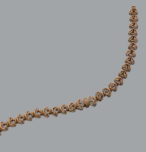 Collier en or jaune 18k (750) composé de double boucles enlacées.