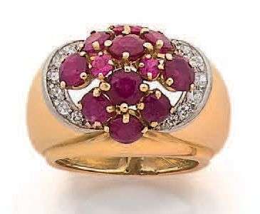 Bague en platine (950) et or jaune 18K (750) sertie d'un bouquet de rubis