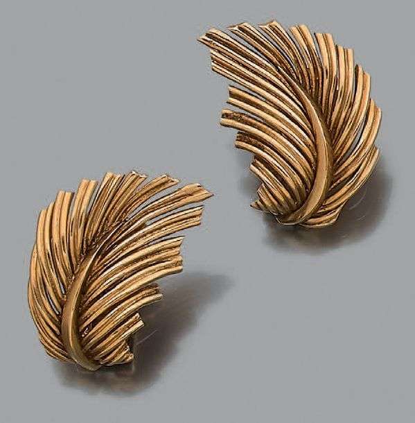 Paire de clips d'oreilles «feuille» en or jaune 18K (750). Signés et numérotés.