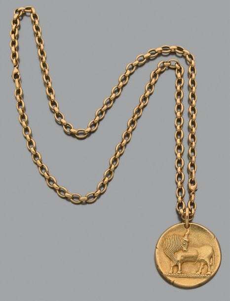 A yellow gold chain with an important yellow gold pendant designed as ram head. Signed and numbered.