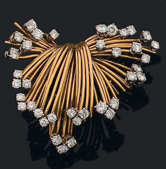 Clip en or jaune 18k (750) et platine (950) serti de diamants de taille br