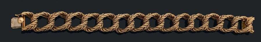 Bracelet articulé en or jaune 18K (750) à maillons tressés.