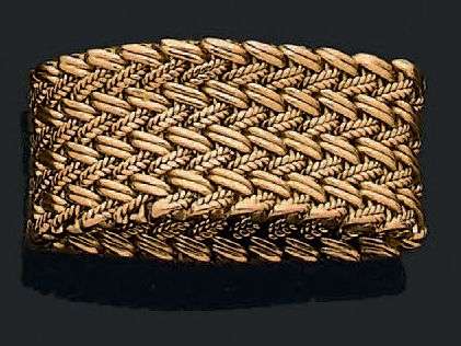 Bague souple en or jaune 18K (750) tressé. Signée Hermès et numérotée.