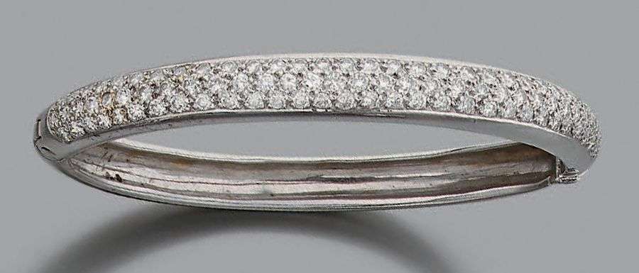 Bracelet jonc en or gris 18k (750) pavé de brillants.