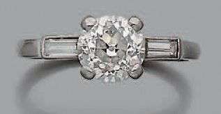 Bague en platine (950) sertie d'un diamant de taille ancienne épaulé de de