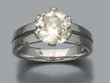 Bague en or gris 18k (750) sertie d'un diamant solitaire de taille ancienne.