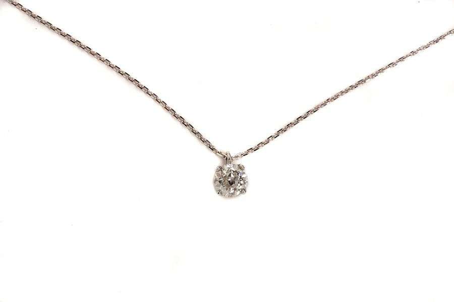 Pendentif solitaire en or gris 18k (750) et sa chaine