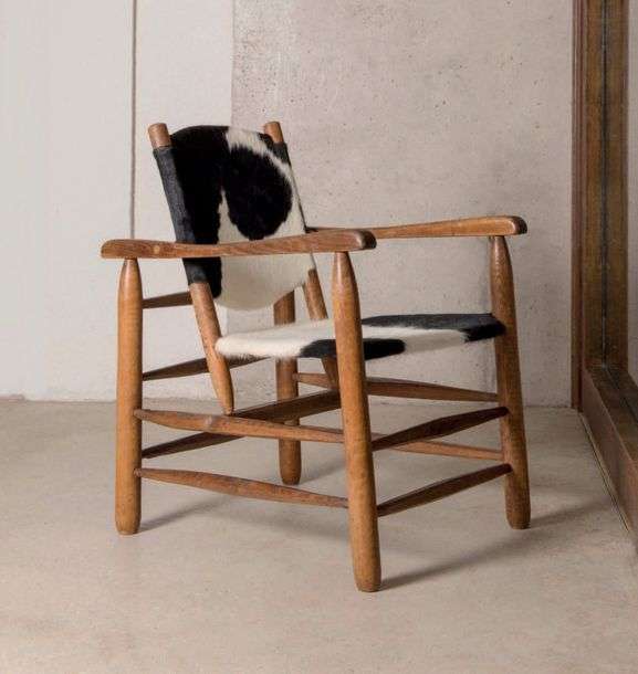 Oak, straw, hide 30.71 x 26.77 x 21.65 in.
