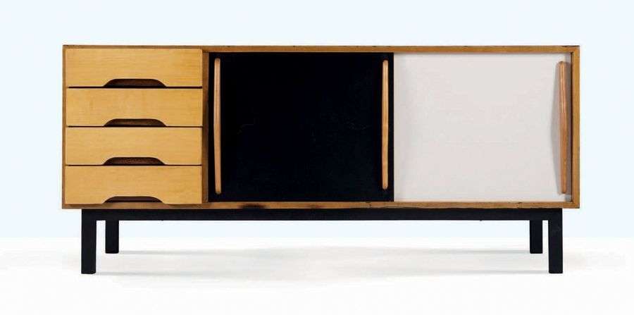 Ash-veneered wood, oak, plastic-laminated plywood, painted metal 29.92 x 61.81 x 17.72 in.
