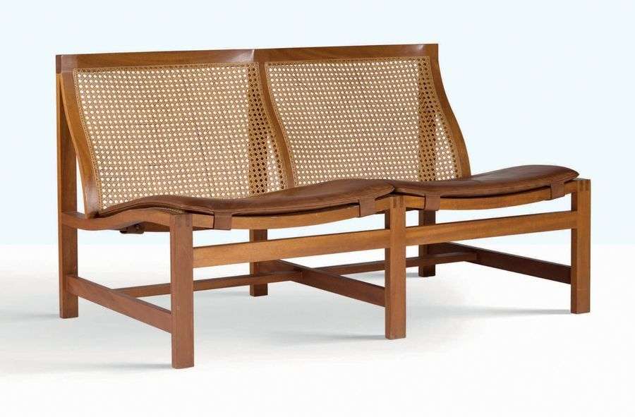 Walnut, cane, leather 27.56 x 66.93 x 27.56 in.