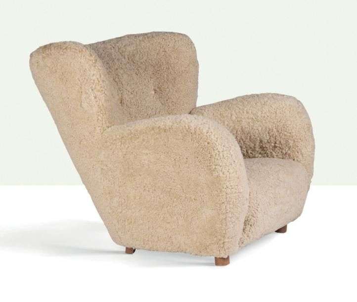 Sheepskin, wood 35.43 x 36.61 x 40.94 in.