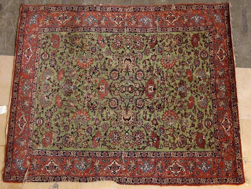 Velours en laine d'agneau dite "kork", fonc vert pistache à décor de semis de palmettes fleuries